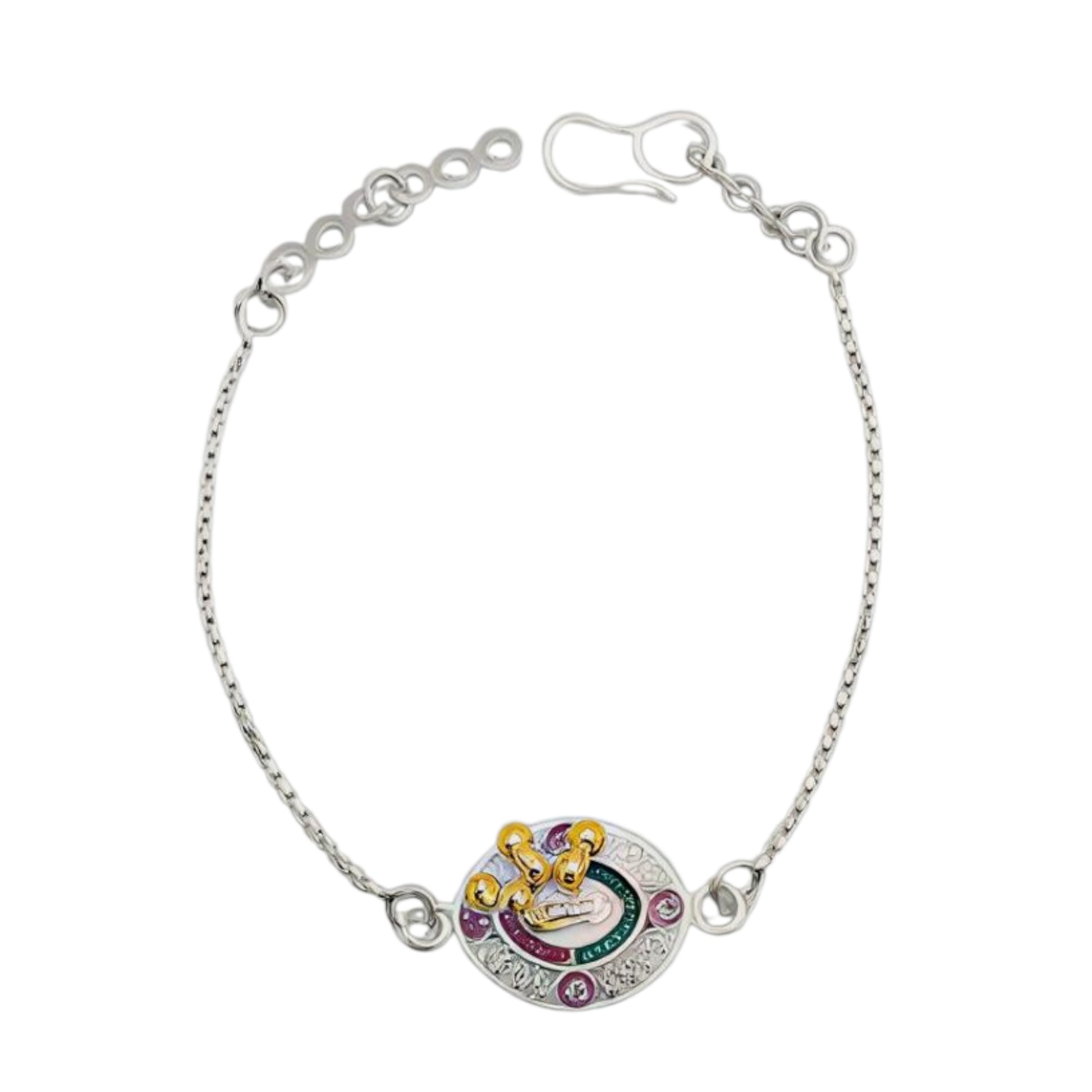 A charming pure silver baby shower Rakhi featuring a delicate chain and an adorable centerpiece with colorful detailing—perfect for celebrating the mom-to-be and welcoming the little one with love, blessings, and elegance. A beautiful keepsake to cherish even after the occasion.
