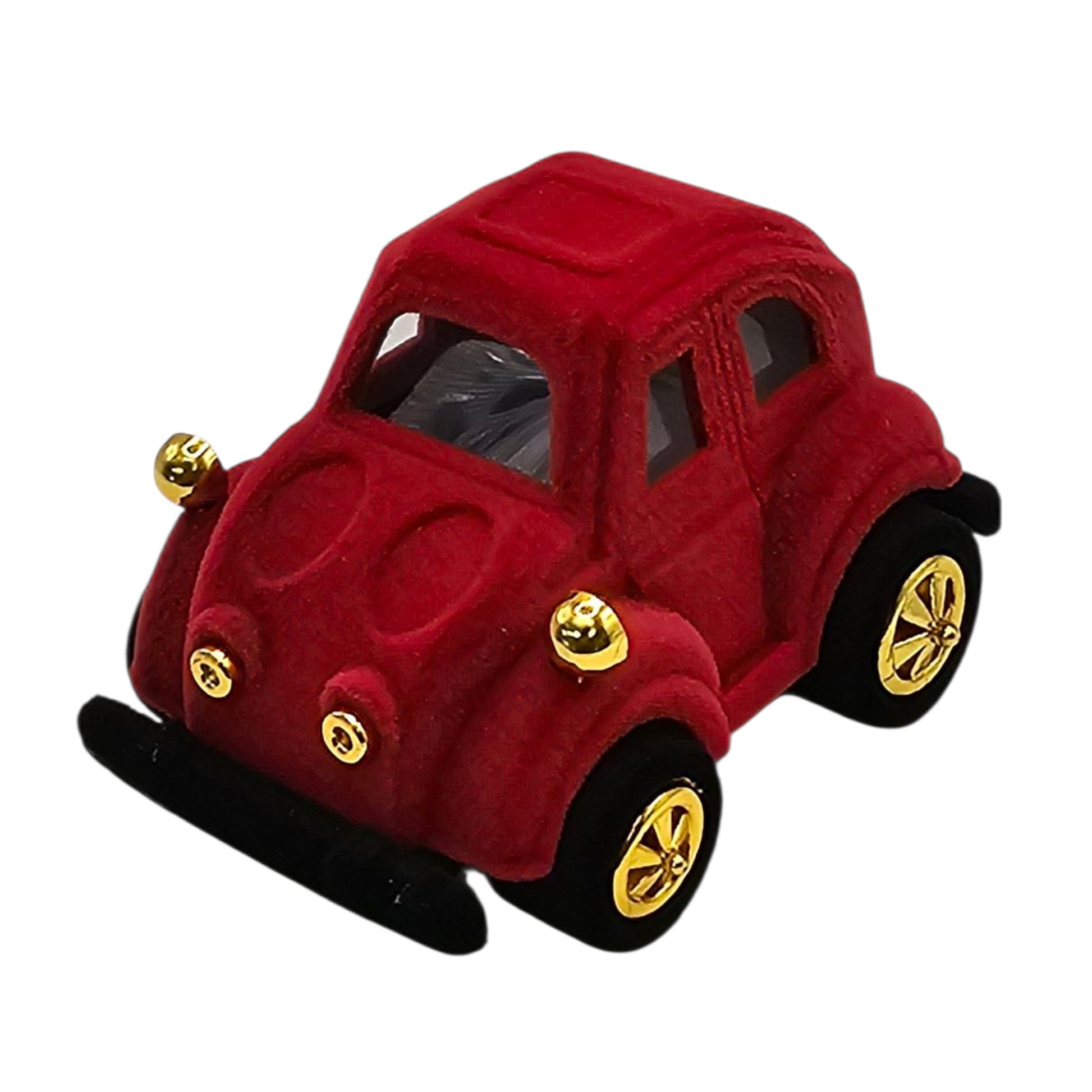 A charming car-shaped single ring jewelry box, finished in rich red velvet with golden accents. Designed to make ring gifting playful, memorable, and truly special.