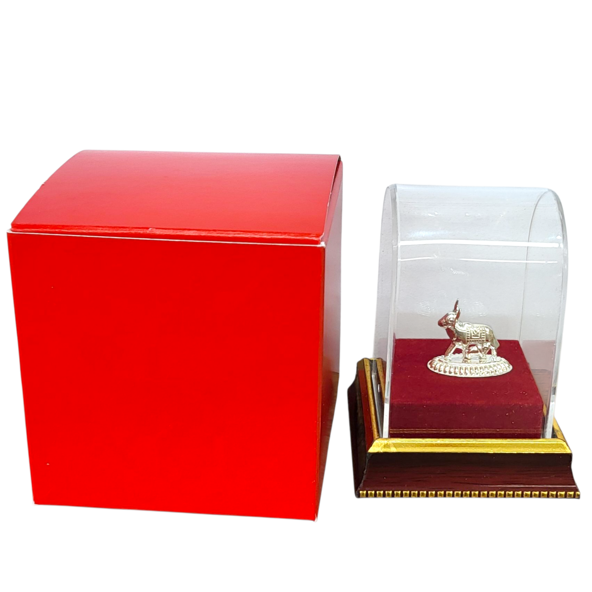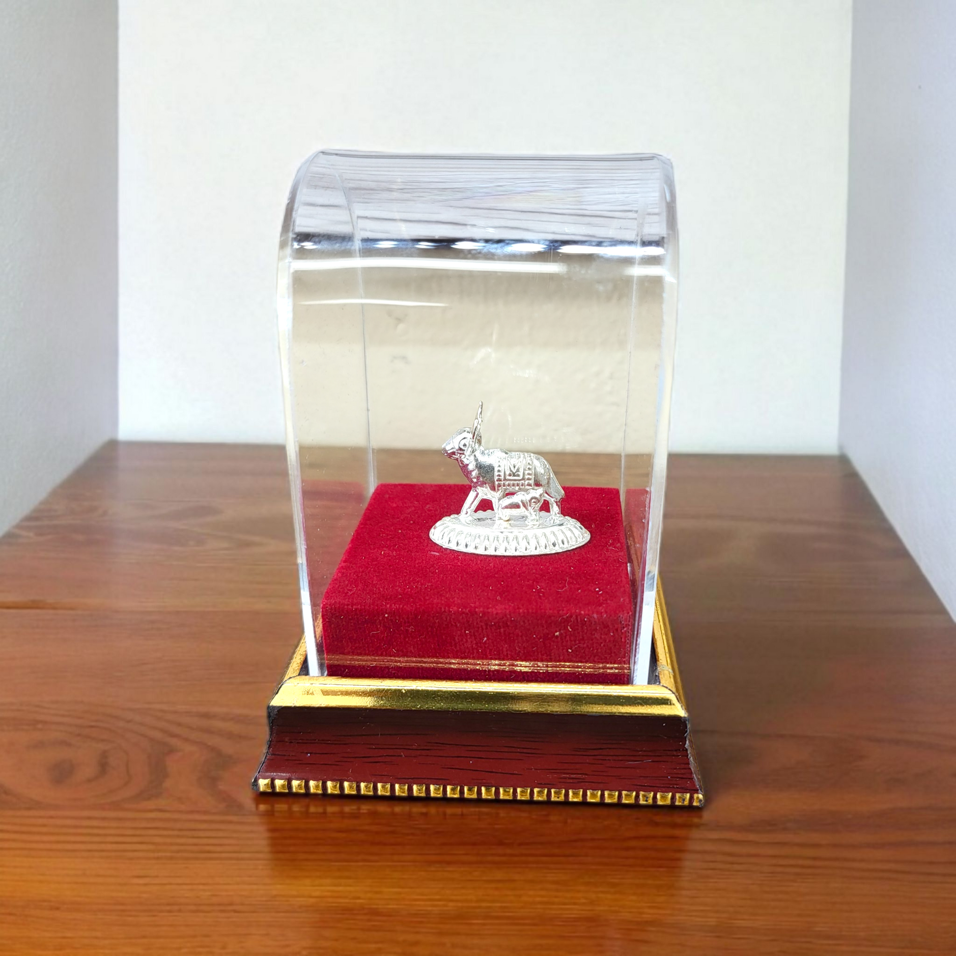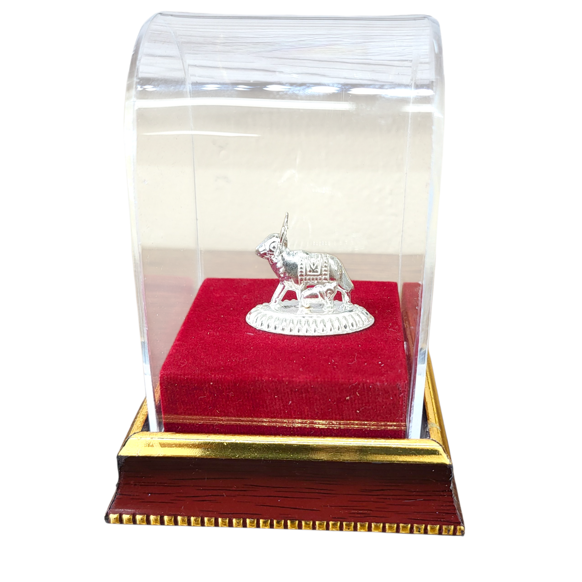 Beatiful holy symbol of pure silver cow with calf in acrylic box ideal for gifting