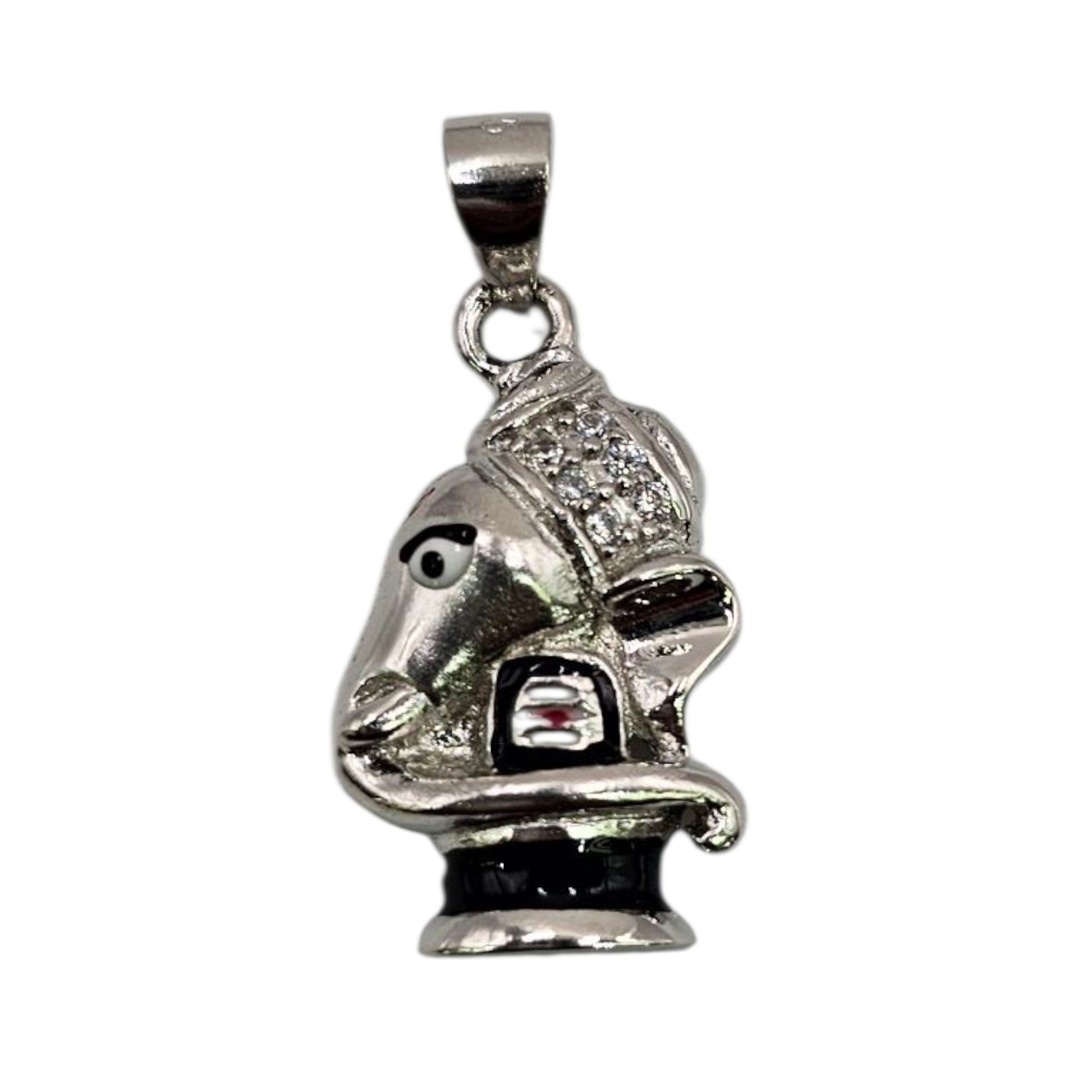 This stunning Lord Ganesh silver pendant features a unique side-profile design of Ganpati with a finely detailed crown embellished with shimmering stones and Shivling. The pendant’s base showcases elegant black enamel work, adding a touch of contrast and modernity. A perfect blend of devotion and style, symbolizing wisdom, success, and divine grace.
