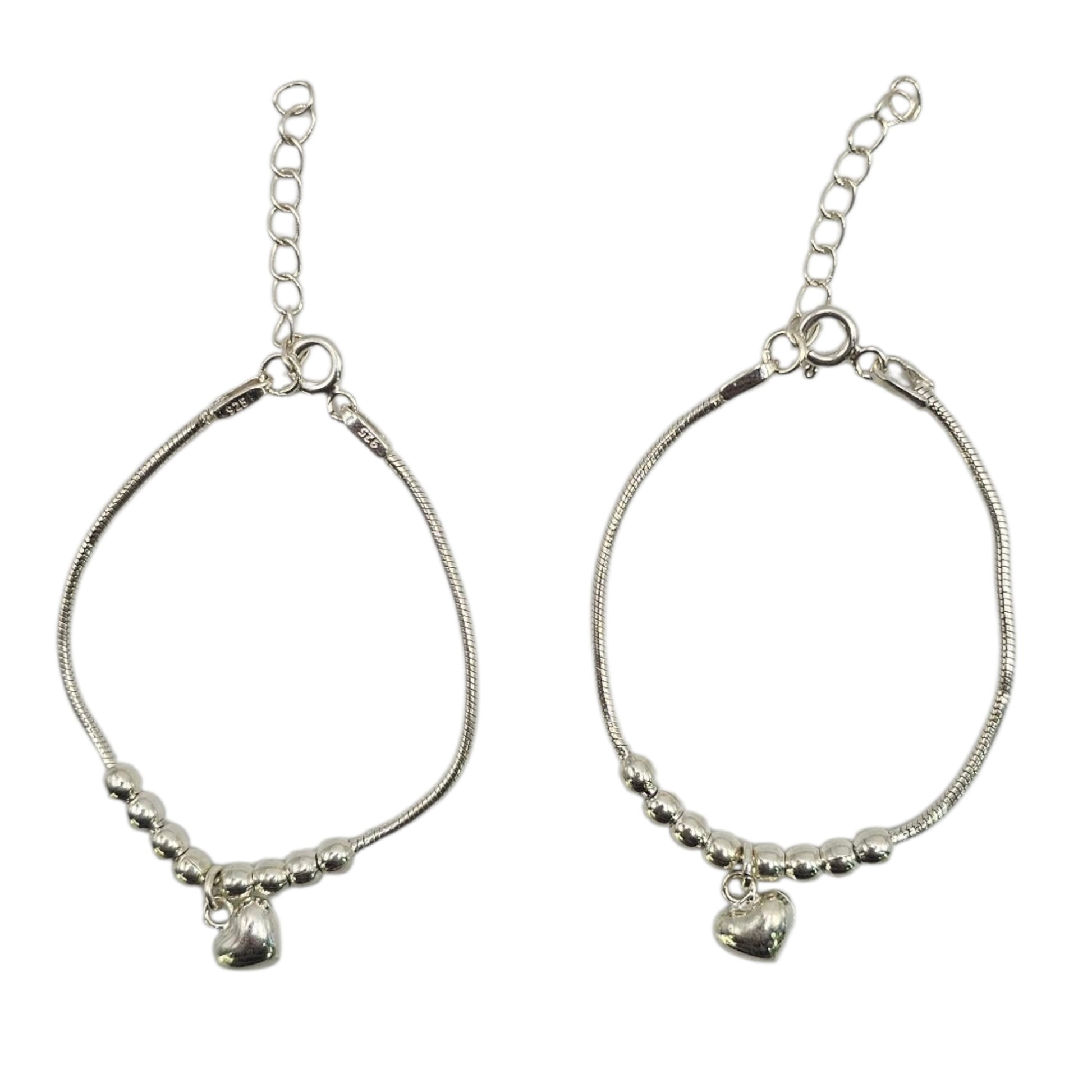 These adorable kids’ silver anklets are crafted in pure 925 sterling silver, featuring a sleek snake-chain design paired with silver beads. Each anklet is finished with a dangling heart charm, adding a cute and timeless touch that little ones will love. The adjustable extension chain ensures a comfortable fit as the child grows, making it both stylish and practical for everyday wear or gifting.